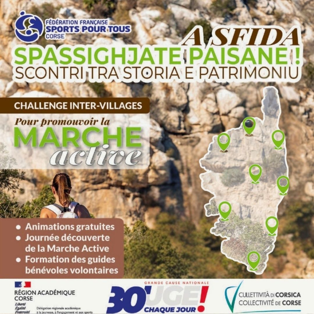 Le Comité Sport pour Tous de Corse lance le challenge A sfida spassighjate paisane ! Scontri trà storia è patrimoniu, une action conviviale et sportive visant à promouvoir la pratique régulière de la marche, la découverte du patrimoine local, l’inclusion et le respect de l’environnement entre les habitants des différentes communes participantes. Une première journée de sensibilisation a eu lieu à Linguizzetta.