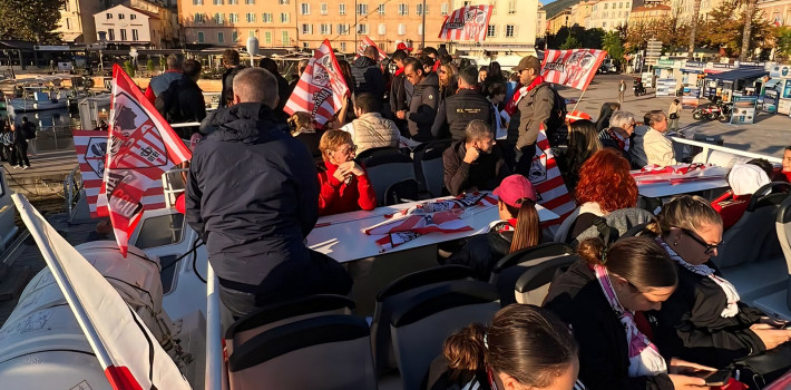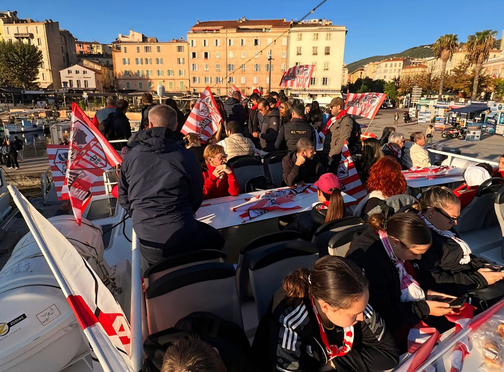Plus de 400 supporters du club ajaccien ont fait le déplacement, dont 330 par voie maritime : les socios acéistes avaient réservé deux bateaux de promenades en mer.