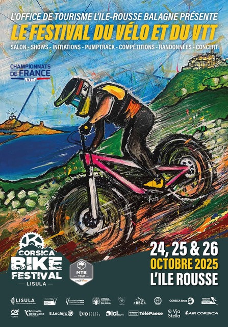 • Lisula XCM Marathon/Randos de 31, 48 ou 78 km : dernière étape du MTB Tour Cycling Challenge dans les catégories Espoir, Senior Elite, Master 30, Master 40, Master 50 et Handisport. Prologue chronométré dans L’Île-Rousse (optionnel) le vendredi ; Marathon XC 76 km et E-bike 48 km en VAE le samedi 25 octobre à partir de 9 h