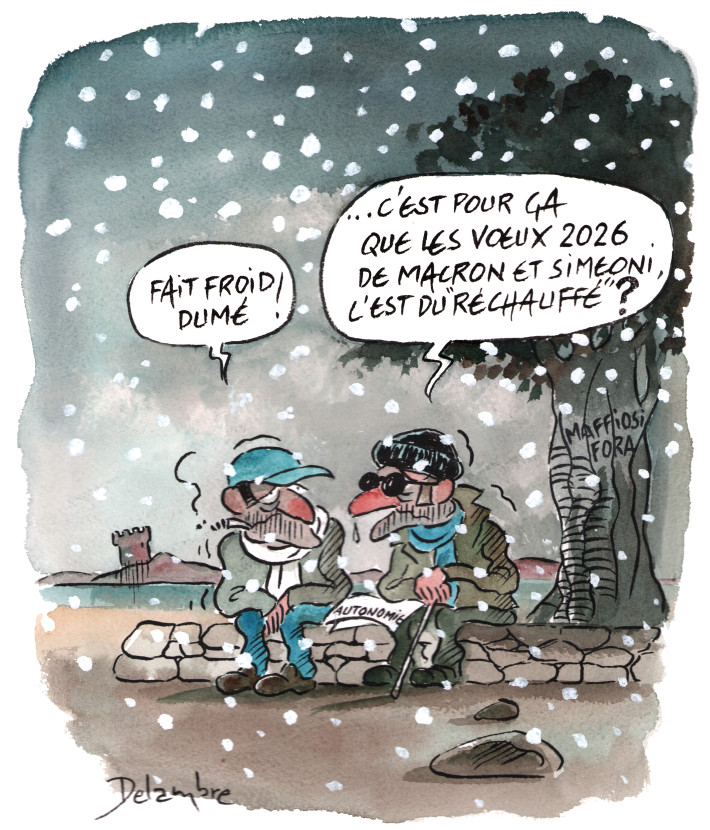 Emmanuel Macron et Gilles Simeoni ne sont certes pas responsables de tout. Des éléments de contexte sont à prendre en compte. Mais tous deux, depuis leur accession aux responsabilités, ayant voulu décider de tout ou presque, c’est à eux que sont déjà et seront toujours davantage demandés des comptes. Et les situations qu’ils ont fortement contribué à créer, dont ils sont loin de reconnaître la réalité, relativisent et rendent presque dérisoires ces vœux que l’un et l’autre ont adressés à leurs administrés le soir de la Saint Sylvestre : « Au-delà des chantiers à mener, je veux avoir, pour notre nation, trois vœux. D’abord, un vœu d’unité. Mon deuxième vœu est un vœu de force, d’indépendance. Mon dernier vœu est un vœu d’espérance, espérance pour nous-mêmes et pour nos enfants » nous a souhaité le Président de la République ; « Je forme le vœu que notre île s’engage irréversiblement sur le chemin du bonheur et de l’émancipation » nous a souhaité le Président di Conseil Exécutif. Le traditionnel et élyséen « Je vous souhaite une très belle, une très heureuse année 2026 » et le non moins traditionnel corse et grandvalien « Pace è Salute », ont un goût détestable de café réchauffé qui ne peut ni réconforter ni réchauffer personne ou presque. Comme disait Mammona : « Café bouillu, café foutu ».