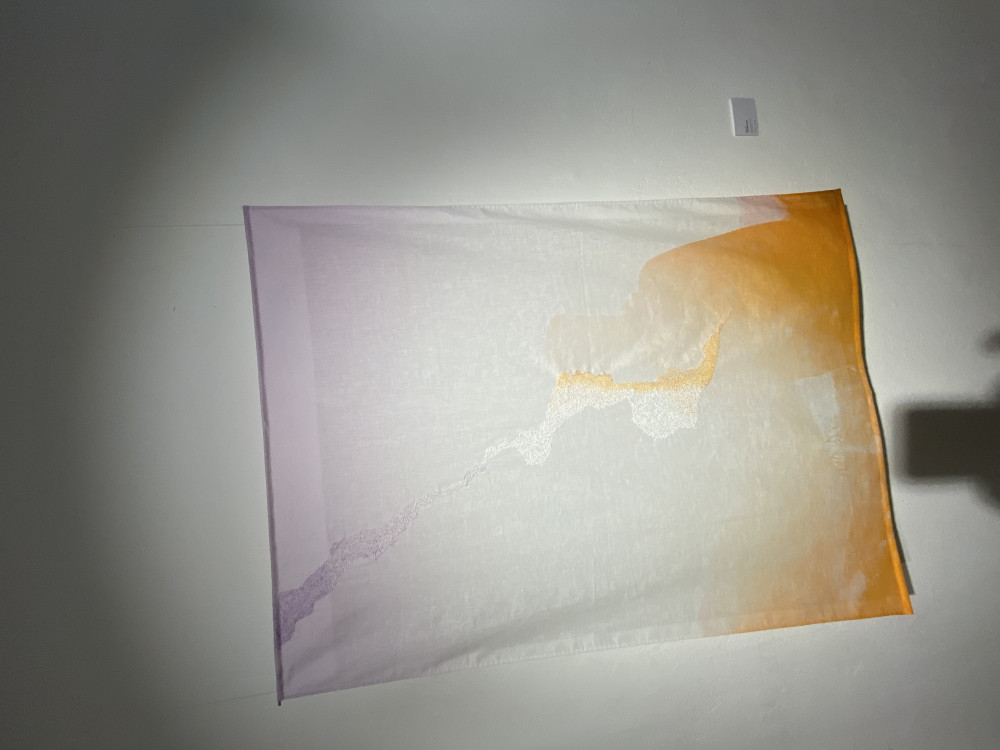 Le lin, le coton, les fibres naturelles, l’organza avec son évanescence j’avais coutume de travailler ces textiles, qui se trouvaient parfaitement appropriés à mon projet artistique, car je recherchais un aspect impalpable, mais cela s’est révélé techniquement compliqué. Heureusement les tests ont fini par être concluants… Le lin, le coton, l’organza fonctionnaient bien avec l’idée de souvenir et de paysages oniriques !