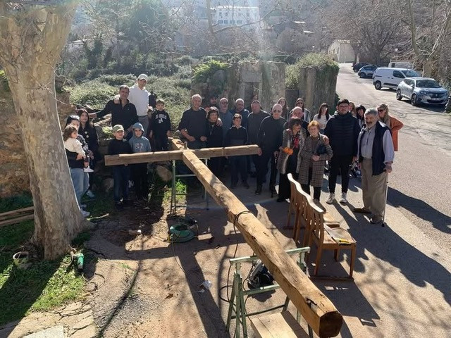 Hè fighjulendu l’altri paesi di l’isula — ch’elli si spiazzanu assai in tutta a Corsica è altrò (eranu in Roma di maghju scorsu per a stallazzione di u Papa Léon XIV) — chè i cunfratelli anu decisu di stallà, elli dinò una croce, ma cù una particularità : cuncepita in paese cù u legnu di castagnu. « À partesi da u XIXu, aghjusta u priore, e croce eranu fatte in Francia o in Italia, a maiò parte in fonte, è dopu traspurtate ind’è noi. Avemu vulsutu fà ne una quì, in paese, cù un legnu nustrale è fatta da tutti l’abitanti è i cunfratellu. Per testimunià ch’ellu si ne pò fà una ind’è noi, masimu cù u nostru legnu. Ùn ci bisognu d’esse bancalaru… »