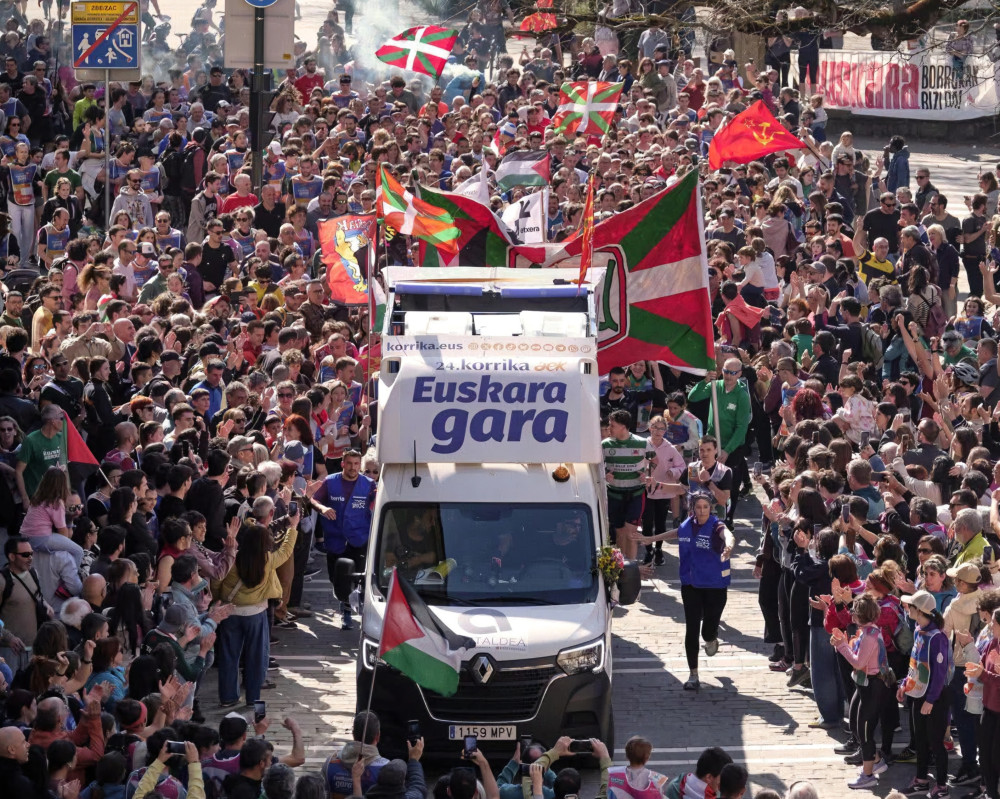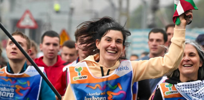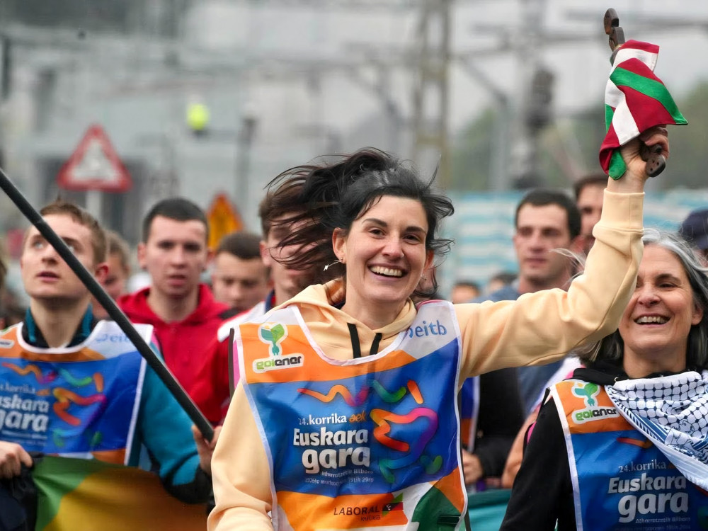 Relayeuse avec le témoin orné d'un drapeau basque / Crédit photo : EH Bildu
